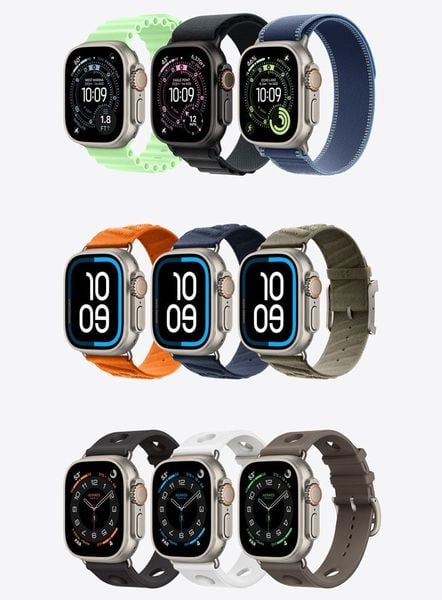 Apple Watch Ultra 3 có hai phiên bản titan gồm màu tự nhiên và màu đen. Bộ sưu tập dây đeo mới gồm dây Trail có chỉ phản quang, cùng màu sắc mới cho dây Ocean và Alpine, mang đến sự đa dạng và phong cách cho người dùng.