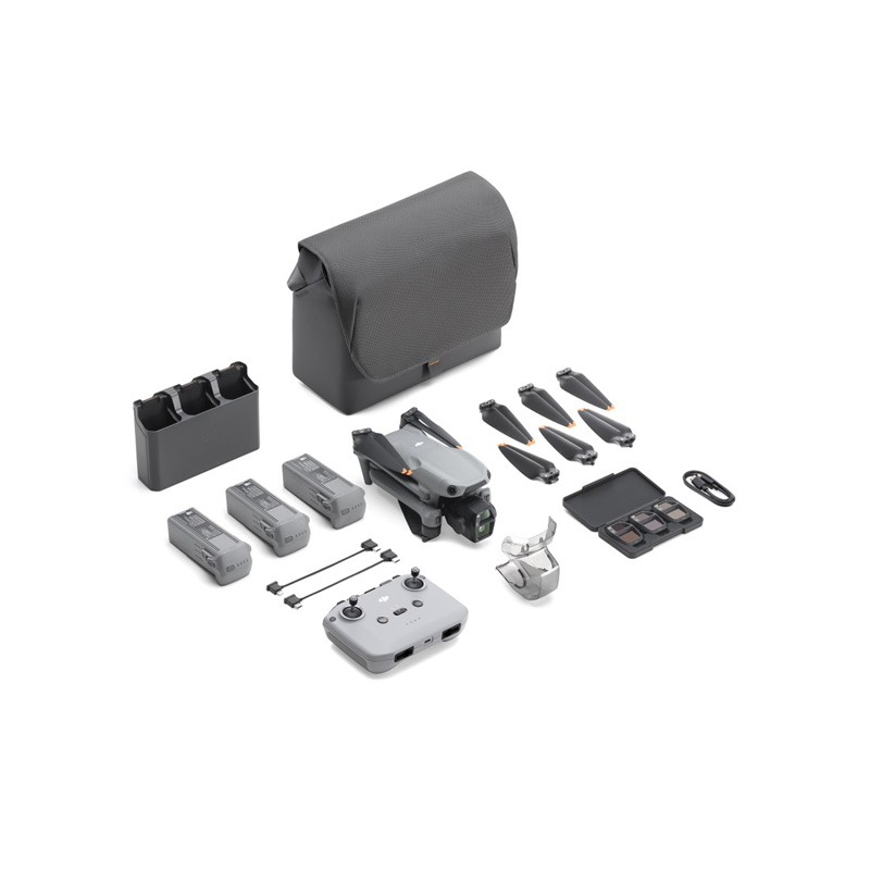 - DJI Air 3S Fly More Combo (DJI RC-N3): Combo này gồm điều khiển từ xa DJI RC-N3, bộ lọc ND, hai pin bổ sung, bộ sạc pin, túi đeo vai và nhiều phụ kiện flycam khác, cung cấp cho bạn trải nghiệm bay tốt nhất.