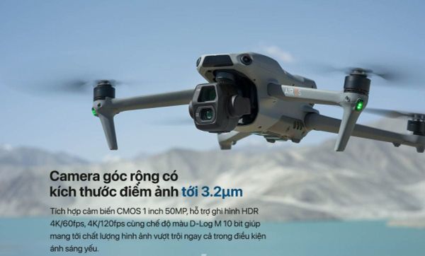 DJI Air 3S là mẫu flycam có camera kép, cảm biến CMOS 1 inch cho camera chính và camera tele tầm trung 70mm, Air 3S mang đến những bức ảnh tuyệt đẹp với dải dynamic range lên đến 14 stop. Sản phẩm này không chỉ cho phép chụp ảnh phong cảnh và chân dung với chi tiết sắc nét, mà còn tích hợp nhiều tính năng hiện đại như cảm biến chướng ngại vật cảnh đêm và Smart RTH thế hệ tiếp theo, đảm bảo an toàn tối đa khi bay vào ban đêm.