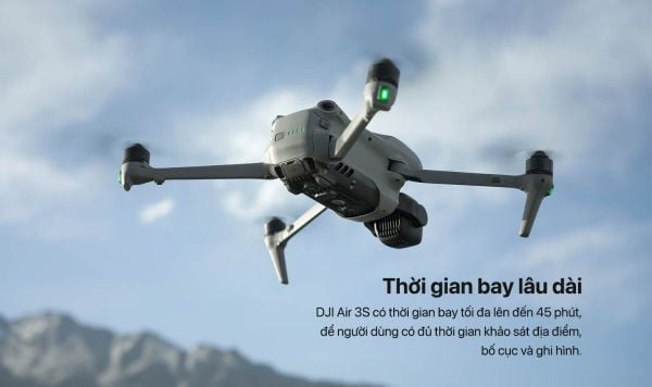 Thời gian bay tối đa 45 phút và khoảng cách truyền hình ảnh 20km là những con số ấn tượng biến DJI Air 3S trở thành người bạn đồng hành lý tưởng cho những chuyến bay khám phá. Người dùng có thể tự tin điều khiển thiết bị bay xa hơn, ở lại trên không lâu hơn và ghi lại những thước phim chất lượng cao.