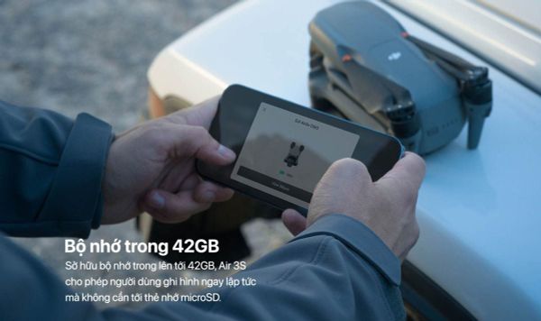 Với 42GB bộ nhớ trong sẵn có, Air 3S giúp bạn bắt đầu ghi hình ngay lập tức mà không cần loay hoay với thẻ nhớ microSD, mang đến trải nghiệm sáng tạo liền mạch.