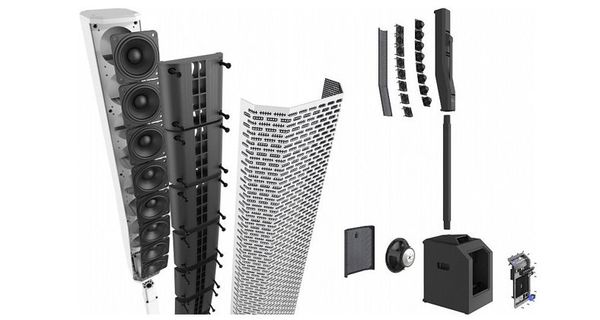 - Loa Column Array (cột đứng): Được thiết kế thanh mảnh nhưng chắc chắn, gắn vào subwoofer qua một hệ thống nam châm từ tính, giúp việc lắp ráp nhanh chóng mà không cần dây kết nối rườm rà.
