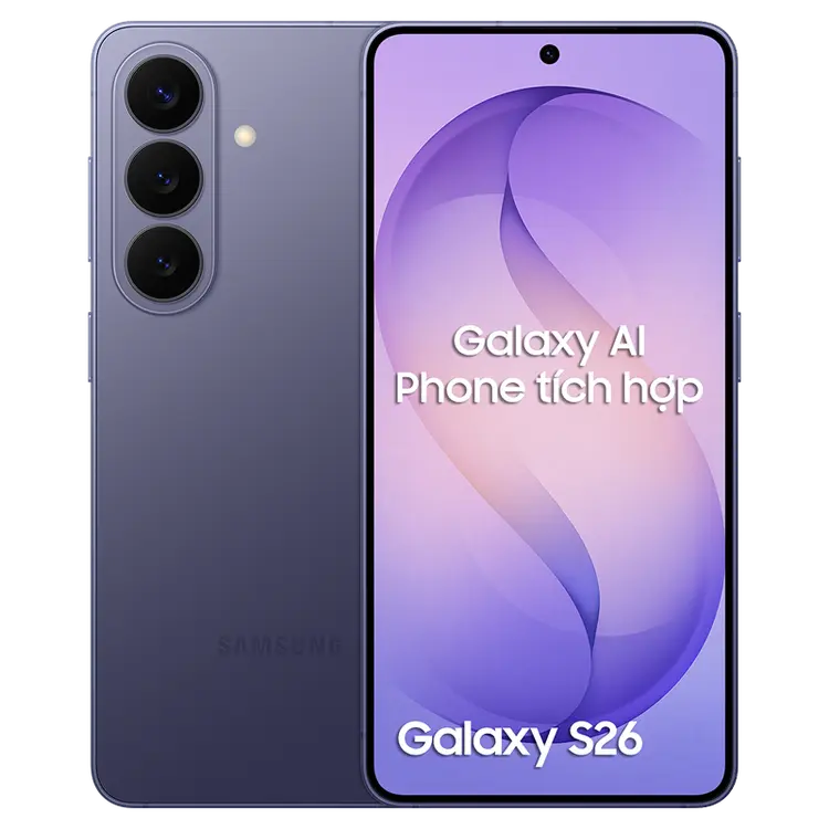 Galaxy S26 là flagship nhỏ gọn nổi bật của Samsung trong năm 2026, hội tụ công nghệ tiên tiến trong thiết kế tinh tế và cao cấp. Máy trang bị vi xử lý Exynos 2600 tiến trình 2 nm cho hiệu năng mạnh mẽ và tiết kiệm điện năng hiệu quả. Hệ thống Galaxy AI được tích hợp sâu, hỗ trợ xử lý thông minh từ chụp ảnh, tìm kiếm đến quản lý công việc hằng ngày, giúp mọi thao tác trở nên nhanh chóng và tiện lợi hơn.