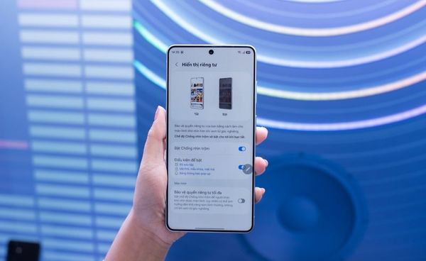 Privacy Display có thể được bật nhanh trực tiếp từ Quick Panel hoặc thiết lập tự động theo từng ứng dụng được chọn trước, phù hợp với các tác vụ yêu cầu mức bảo mật cao như nhập mã PIN, mật khẩu, đọc tin nhắn riêng tư hoặc xử lý thông tin cá nhân. Ngoài phần nội dung chính, các cửa sổ pop-up và thông báo cũng được làm mờ, đảm bảo thông tin không bị lộ ngay cả khi thiết bị đang ở chế độ sử dụng công khai.