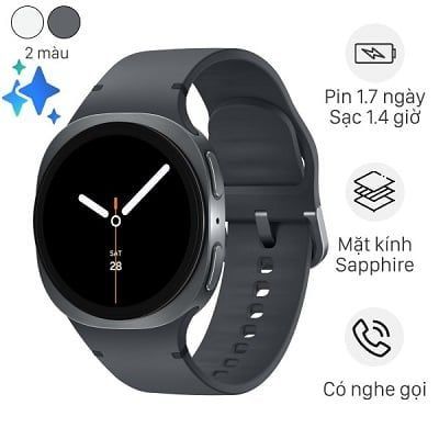 Sở hữu thiết kế mặt tròn đặc trưng của dòng Galaxy Watch, phiên bản Watch8 40mm tiếp tục duy trì phong cách hiện đại nhưng được tinh gọn về kích thước và trọng lượng. Cụ thể, mặt đồng hồ sử dụng chất liệu kính Sapphire chống trầy xước kết hợp cùng khung vỏ mỏng 8.6mm giúp thiết bị nhẹ nhàng trên cổ tay, phù hợp để đeo trong thời gian dài mà không gây cảm giác vướng víu. Samsung cung cấp hai lựa chọn màu sắc gồm xám và bạc, phù hợp cho cả phong cách thể thao và trang phục công sở.